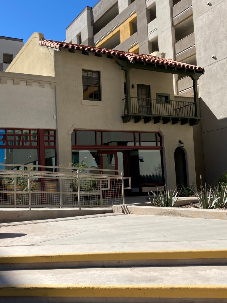 A 2022 image of the original El Charro facade in downtown Tucson. Behind it is the newly constructed Flinn Building, which replaced La Placita Village, which was the City’s answer to leveling “La Calle” that left about 300 residences destroyed and 900 people, primarily of Mexican, Indigenous, Chinese, and African American descent, displaced in the 1960s.